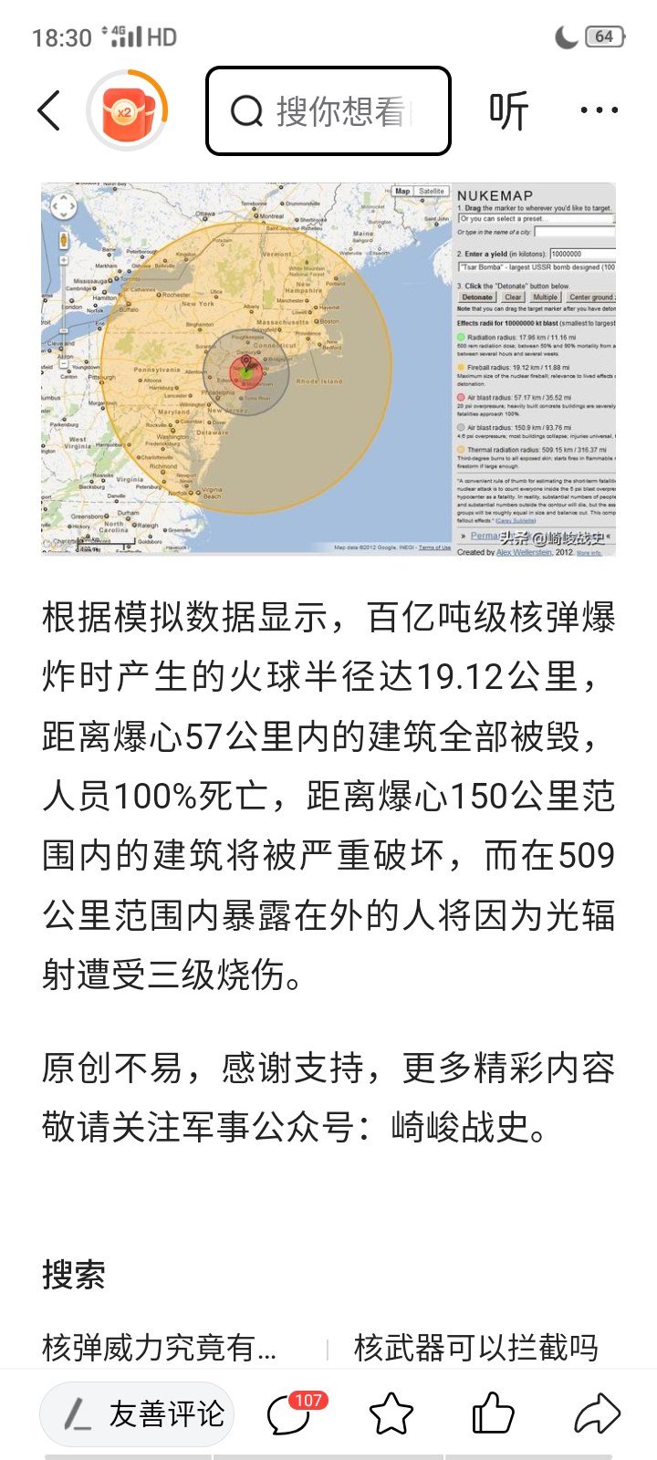 Many people don't understand the power of nuclear bombs. Let me educate you on this. Most are exaggerated. The typical example is the Tsar. In terms of energy, Xiaodi revealed that he is more than 100 times more powerful than the Tsar. Even regardless of the energy, the explosion range of Xiaodi is larger than that of a nuclear bomb, because a lot of the energy he exposed is diffused upward, causing most of the energy to be wasted, but the range is still a radius of 10 kilometers, while the Czar's is only 4.6 Kilometers. Neither of these comes with a shock wave. Atomic bombs are even more useless. Most people overestimate the capabilities of modern military weapons. A nuclear bomb flies at a speed of more than ten Mach, but its descent speed is less than Mach 2. It can be said that Naruto-chan's Mach 5 setting only performs well without opening the eight-door genin Xiao Li's supersonic speed. In terms of defense, most ninjas are not as bad as the rumors. Their physical bodies are three times that of ordinary people, not to mention chakra defense. A pencil with chakra attached is more powerful than Barrett, not to mention that other weapons with chakra attached are even more powerful. If his defense was poor, Iruka would have died countless times. In terms of the size of the ninja world, with the productivity of ancient times, the desert country could afford to support it. One person can imagine how big it is, and there are two other continents.