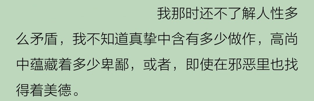 I really like this "Only a few people in the world can finally achieve their ideals. Our life is very simple and simple. We are not ambitious. If we are proud, it is because we are proud of the fruits of labor obtained through our hands. We are neither jealous nor resentful of others." It is serious and smooth. It's not an excuse for mediocrity, it's an elegant and modest statement from someone who lives a good life.