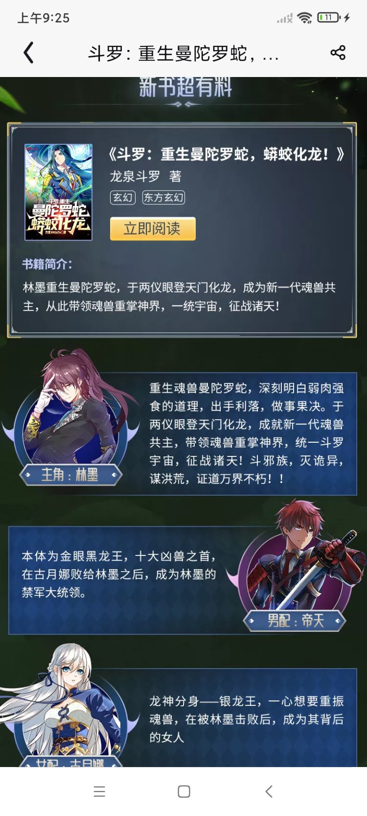 Lin Mo was reborn as the Mandala Snake and became Tang San's original first spirit ring. Fortunately, he activated the two magical skills of [Great Sage] and [Predator], and from then on he turned into a dragon and became the master of all beasts! Start by unifying the Douluo universe and conquer the heavens! ! Gu Yuena: With Lin Mo here, the revival of the soul beast is just around the corner! Xiao Xun'er: Brother Lin Mo is the best! The ruthless emperor: I don't want to become an immortal, I'll just wait for you in reincarnation! This book is also known as: "About My Rebirth as a Mandala Snake", "My Infinite Devouring and Evolution in All Realms"...