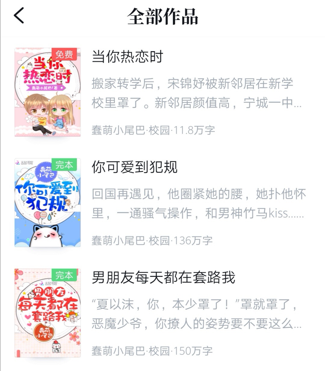 You promised to finish all three books I was there when you wrote the 300th chapter of your first book. The second book, the third book, I was not absent You are the only author whose updates I wait for every day i like you Like Mu Jingchen likes Xia Yimo Like Mo Shilin likes Su Weiran Like Shen Wan likes Song Jinyu Like Xiao Xiao likes Qi Ziran Like Xu Pianpian likes Xi Fang Like Jiang Zhi likes Lin Zichen Book 1, Chapter 1363, 1.45 Million words Book 2 Chapter 1267 1.34 Million words The third book, Chapter 226, 240,000 words Looking forward to your fourth book