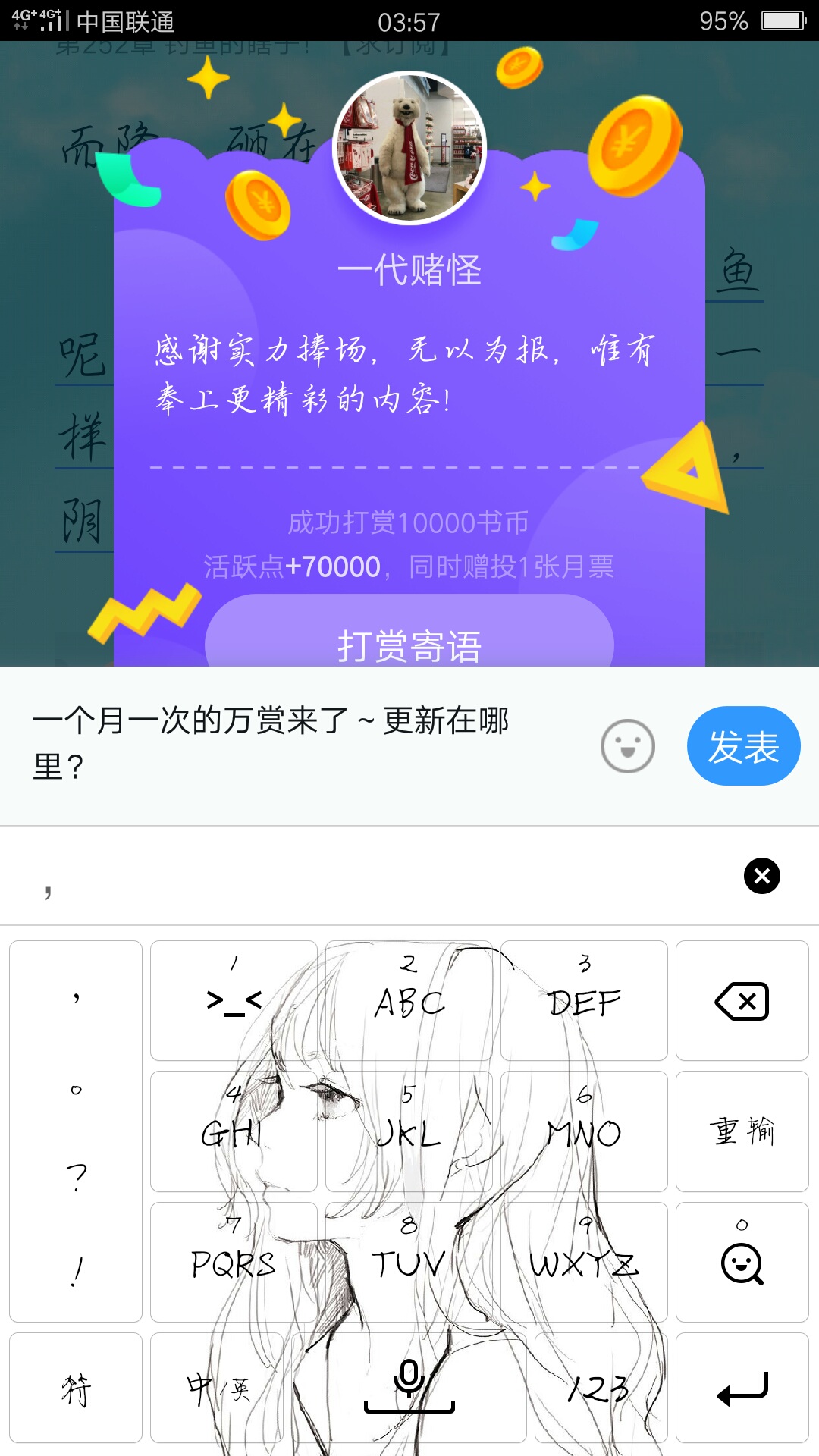 "Super Seminary Abnormal Gunslinger" has been released. He came to the world of One Piece by accident and became the son of the Celestial Dragon Void Throne Im. He came with a lottery system to draw three colors of Haki and a fantasy beast animal fruit... "You may not know what it means to win 5 million points with 20,000 points!! We call this kind of person a gambling monster! Back then, Chen Daozai won 37 million with only 20 yuan. I, Leng Yu, won 5 million with 20,000 points today. It's not a problem!"