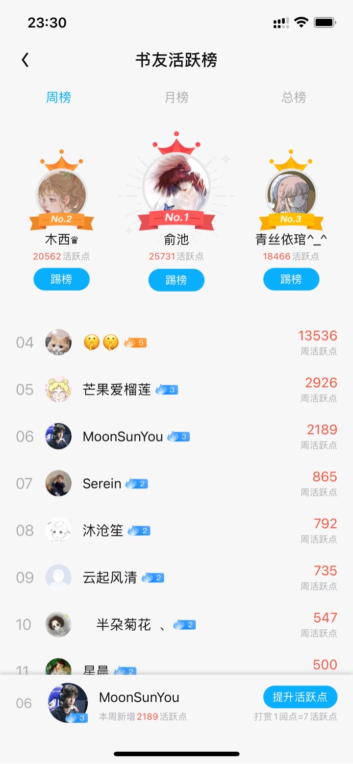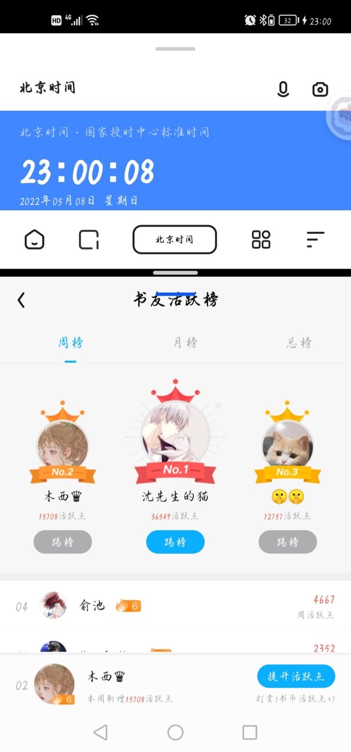 Missed the time again (T ^ T) Take a screenshot now~ Congratulations to the first and second babies ~ Yu Chihe 🤫🤫. Follow the pictures directly. Babies, please remember to enter the private address to claim the prizes ~ 📣Launch activities📣 Thanks to the babies for accompanying you all the way, Wenwen has started to charge for the shelves, let's continue the activities with Song Ye and Youbao (^_−)−☆ ‼ ️The first place on the weekly active list of book friends can get a chocolate gift box of the same style as Mr. Song ‼ ️The second place on the Book Friends Weekly active list can get a fruit tea gift box of the same style as Mr. Shen 🕘Activity time: May 9, 2022 - May 15, 2022 23:00 💌Event location: QQ reading ❓How to increase activity points: 1. Check in with book friends circle 2. Daily tasks in the book club 3. Advanced tasks in book club ❣️To summarize briefly, check in more, comment more, and vote more~ Come and participate actively (✪ω✪)