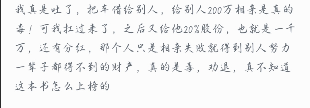 Personally, I like to read the name first. If I'm interested in the name, I'll read the introduction. If I'm not sure, I'll read the comments. Judging by the name, it's the same novel that was on the top free list in early July, and the name doesn't change much. Looking at the introduction, there are some reference elements, but there is nothing much to say. But when I looked at the review posts, my friend, I scrolled through several and almost all of them had one star. Some of them commented that it was a minefield, that kind of upstart behavior, where someone goes on a blind date and gives him two million. Once I saw it, I immediately lost interest. Don't call me a troll, you see, I didn't give it one star.