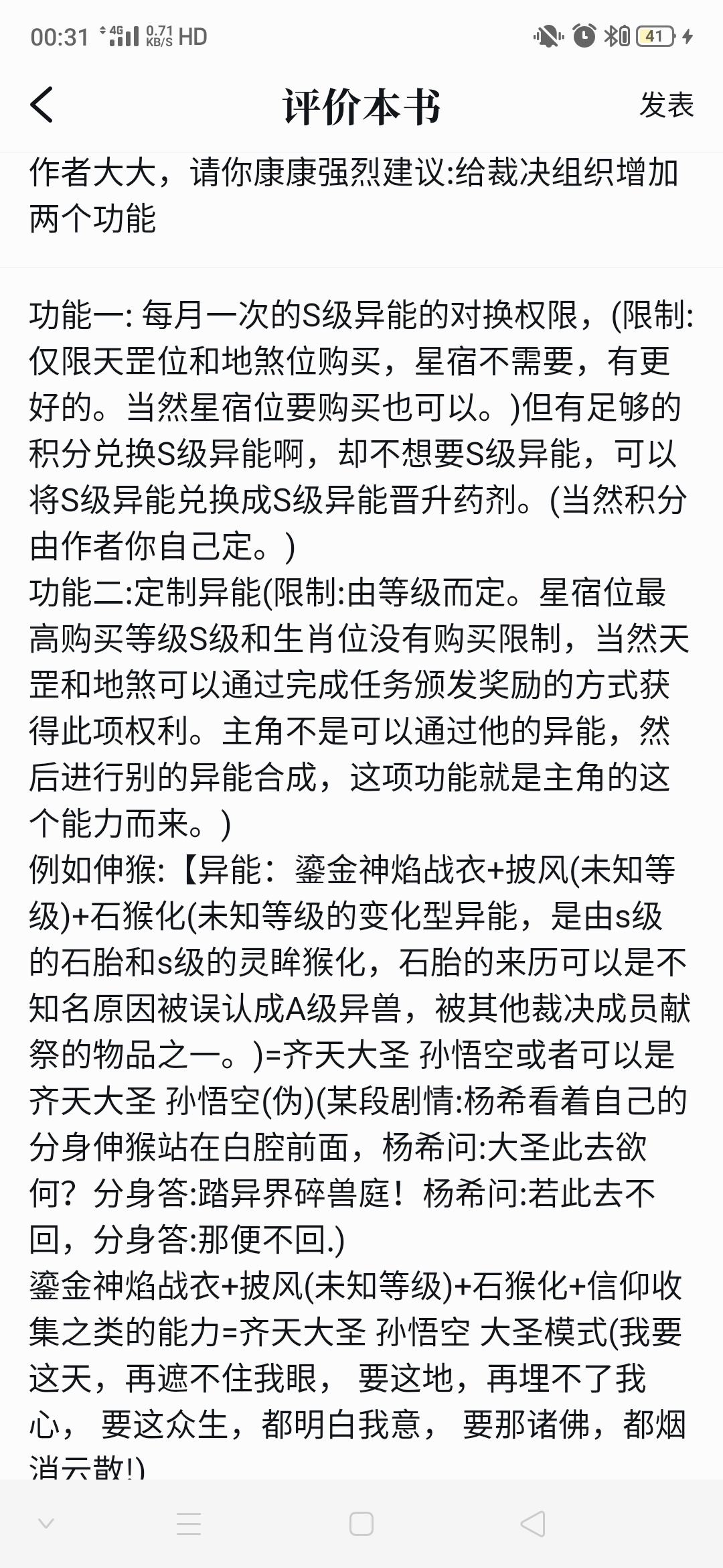 Function 1: Exchange rights for S-level abilities once a month, (restriction: only available for Tiangang position and Disha position, not required for Xingxiu, there are better ones. Of course, Xingxu position can also be purchased.) But if you have enough points to redeem S-level abilities, but don't want S-level abilities, you can exchange S-level abilities for S-level ability promotion potions. (Of course, the points are determined by the author yourself.) Function 2: Customized abilities (Restrictions: Depends on the level. There is no purchase limit for the highest purchase level of the constellation position, S level, and the zodiac position. Of course, Tiangang and Disha can obtain this right by completing tasks and issuing rewards. The protagonist can not use his abilities and then synthesize other abilities. This function comes from the protagonist's ability.) For example, Monkey: [Superpower: Gilded Divine Flame War Clothes + Cloak (Unknown Level) + Stone Monkey Transformation (Unknown level of transformational power, it is transformed into a monkey by an S-level stone fetus and an S-level Spirit Eyed Monkey. The origin of the stone fetus may be one of the items that was mistaken for an alien beast for unknown reasons and was sacrificed by other members of the ruling.) = Monkey King Monkey King may be Monkey King Monkey King. Sun Wukong (pseudo) (A certain plot: Yang Xi looked at his clone standing in front of Bai Qiang. Yang Xi asked: What does the Great Sage want to do here? The clone answered: Step into the Garden of Broken Beasts in another world! Yang Xi asked: If you go here and don't come back, the clone answered: Then you won't come back.) Gilt Divine Flame War Clothes + Cloak (Unknown Level) + Stone Monkey Transformation + Belief Collection and other abilities = Monkey King Monkey King Monkey King mode (I want this sky, no longer able to cover my eyes, I want this earth, no longer able to bury my heart, I want all living beings to understand my intentions, I want all Buddhas to disappear into thin air!) Or Gilt Divine Flame Armor + Cloak (Unknown Level) + Stone Monkey Transformation + Buddhism and other powers = Fighting and defeating Buddha Sun Wukong