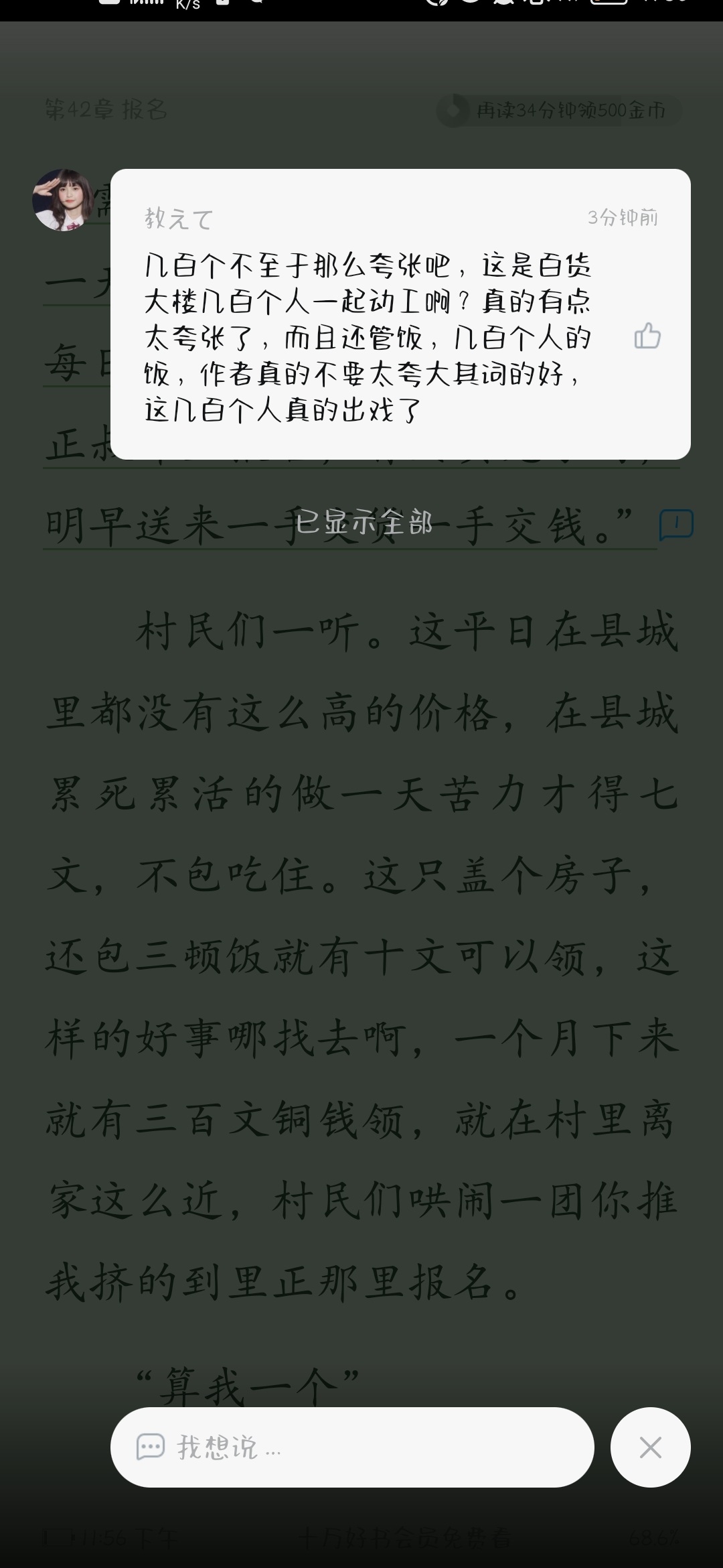 The current novel has more than sixty chapters, but the heroine is lacking. It's a little too big! ! ! I bought a recipe book (I think I like it quite a lot, the description is okay). Once I have the money, I will build a house directly, and I will build a house on 15 acres of land. Can 300 workers understand this? And there are only a few people cooking. Is 10 pounds of fat enough? It's really a bit too big and exaggerated! Even if there is the rhetoric of gods, it is inevitable that some people will be jealous, and it will give people the impression that the steps are too big, and the amount of information that should be described is too much. Many younger sisters unconditionally trust their elder sister. It doesn't matter. The key is to tell some things to the younger sister. The younger sister is very smart. It just feels like the protagonist's halo is a bit too big. Some tricks can be unlocked, after all, she is the heroine of the novel. But I still hope that the author can be more steady, calm down and write more delicately. Don't exaggerate! !