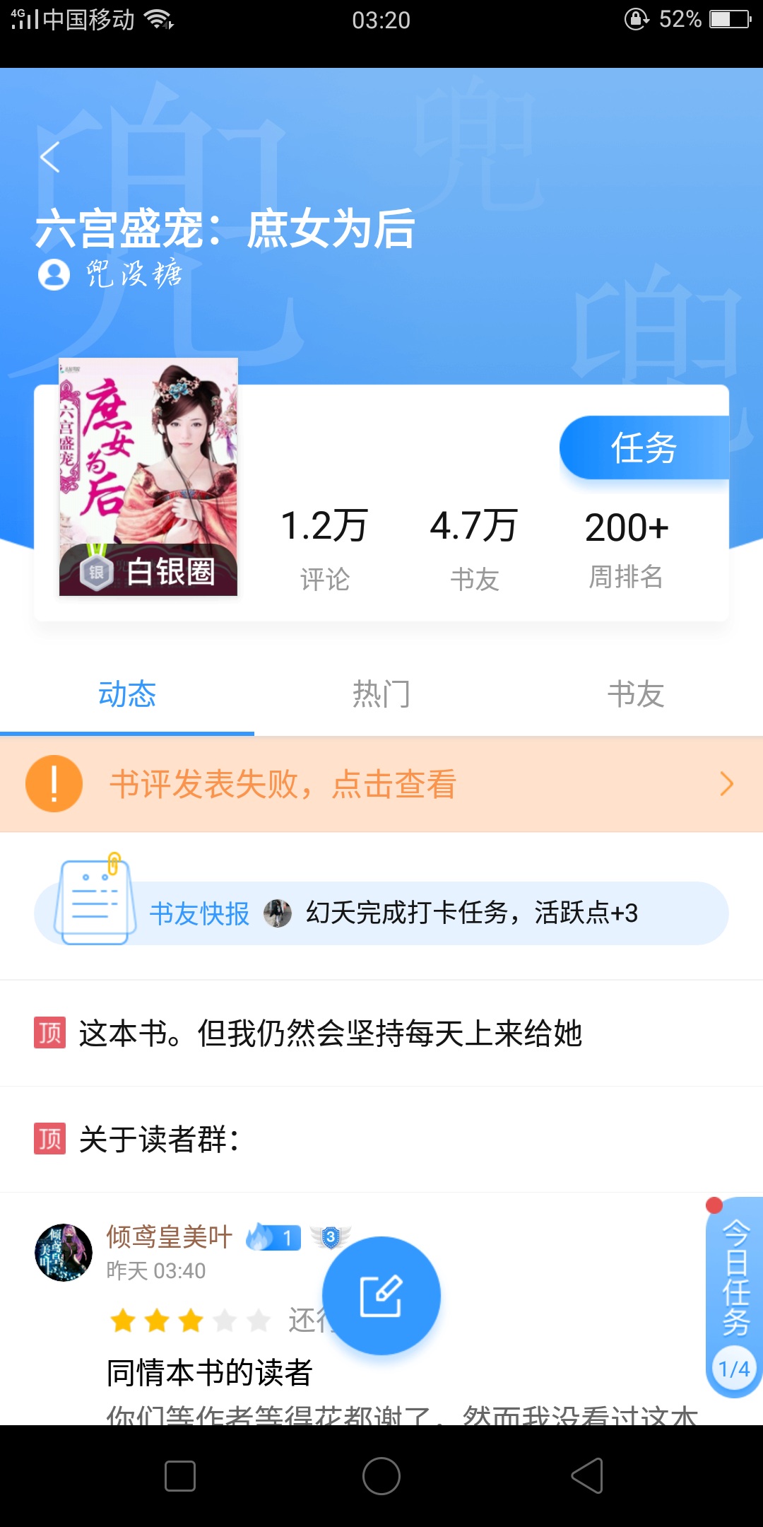 Tangtang has finally been updated again. I have uninstalled QQ Reader and downloaded it several times. Is it possible to stabilize the update this time? Emmm. In other words, if there is anything that breaks or stops updating, please let me know.