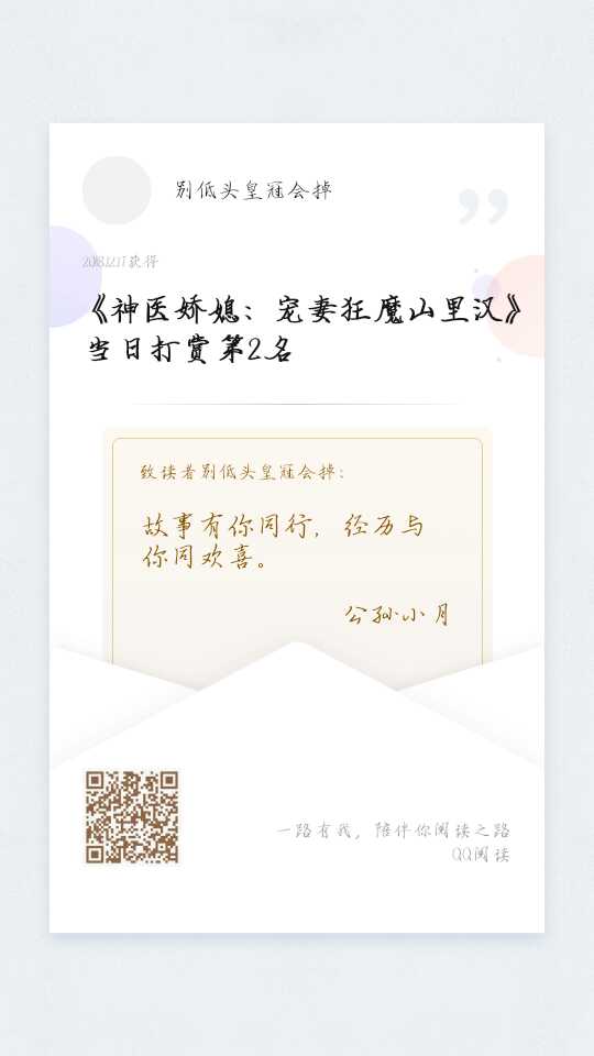 When I was reading Da Da's article in the afternoon, I happened to see the part where the heroine asked her sister-in-law if she had come to Guishui. At that time, my mother was sitting next to me. I turned my head and pointed at the spicy section. Tell her, I envy this kind of woman who doesn't need pain. My mother looked up from the WeChat page and glared at me fiercely. Inexplicable duck~ I just read the latest chapter. Um, I was wrong~ However, the heroine's sister-in-law will eventually become pregnant, right? ?