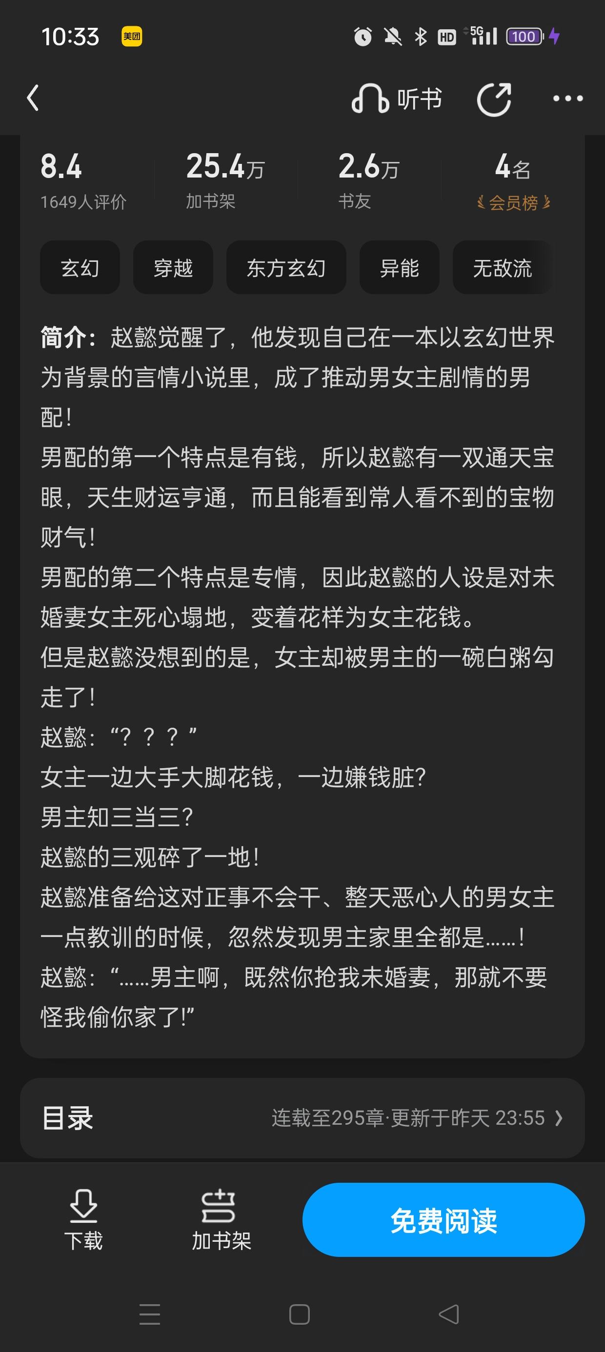 Lin Cheng discovered that the goddess Bai Xuerou, whom he had been chasing for many years, was deceived by Zhao Fei with a bowl of white porridge. Moreover, Lin Cheng is actually only the second male lead, a supporting role, the legendary big licking dog. Zhao Fei interferes with others and is still the male protagonist, but in the end he can live a happy life. God is unfair. Lin Cheng was dissatisfied, and after awakening, he awakened the energy of wealth. You can feel the value of treasures and have good fortune. However, Bai Xuerou still shamelessly wanted to continue to demand from him to satisfy her and Zhao Fei's lives. What bullshit views! Lin Cheng decided to treat the other person the same way as a human being and teach the couple a lesson. As a result, another discovery was made... Lin Cheng: Zhao Fei, you are not a decent guy, don't blame me for being rude.