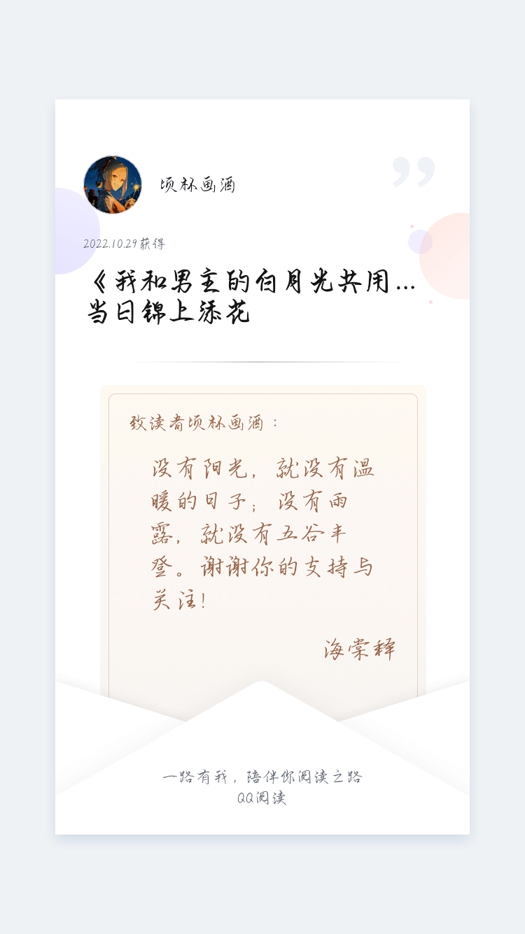 Lin Qingsheng traveled through time. Just because she saw a handsome guy being hit on the head by a ball on the basketball court, she tragically traveled through time. What was even more bloody was that she traveled through a mindless sadistic novel that her roommate recommended to her before and became the male protagonist Bai Yueguang who lived for less than a chapter. Lin Qingsheng adheres to the principle of staying away from male and female protagonists and cherishing life, and is looking for a way to return to the 21st century. The short-lived Bai Yueguang, who has no choice but to share a body with her, is a career boss. He pulls her to pursue a career all day long, and does not even give her the chance to eat and die. Lin Qingsheng wailed speechlessly, she wanted to be ruined, she wanted to go home. But gradually, she found that things seemed to be out of her control. 1.1V1, the heroine is a bit of a charlatan, so don't join if you don't like it. 2. Bai Yueguang is career-minded, has no love brain, and doesn't like anyone. 3. The heroine did not snatch Bai Yueguang's body, nor did she do anything against her will. 4. There is no villain, just a sweet story.