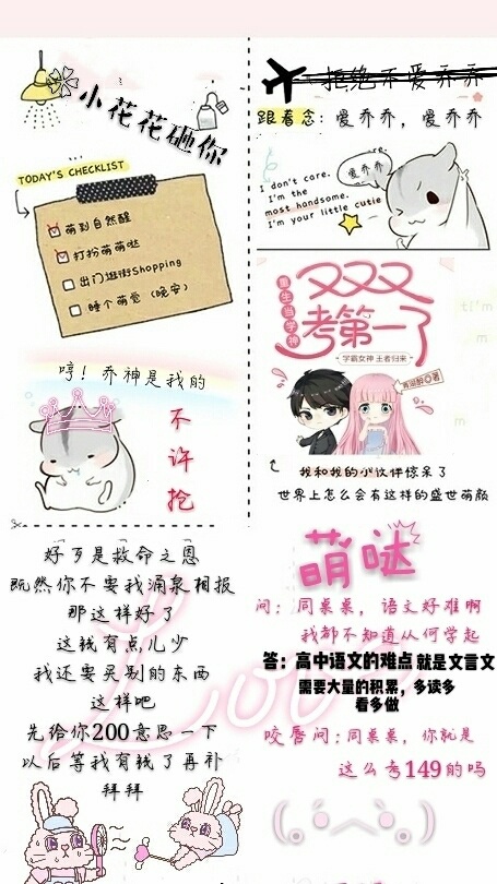 💀The format is as follows: Name: required😾 Gender and age: Please fill in the blank Personality Traits: It's up to you~ Those with special names have a higher chance of being selected ~ Fairies with high fan base will be selected first, mainly because there is no other way to reward your cuteness~ br/>👇👇👇👇br/>😽😽😽😽😽😽🙀 The following are the supporting cast that have been selected. The names of the characters and the chapters in which they appear are generally included. If you miss any, please remind me~ Tang Yunhan, 2nd floor, provided by Hanhan, Chapter 31, Gu Tingjue's best friend Luo Qingzhou, 6th floor, provided by Nan Luba, Chapter 37, Luo Mengmen friends Ye Xiaohai, 3rd floor, provided by Ye Xiaohai, Chapter 45, Sports Committee of Class 1, Grade 1, High School 13 Ling Erlan, 8th floor, provided by Gu Yu (Lin Yuan), Chapter 30, Tang Yunhan Company's Jade Girl Idol Tan Miaomiao, 9th floor, provided by Gu Yu (Lin Yuan), Chapter 44, Lao Tan, head teacher, math teacher, fitness fanatic Shiyu, 5th floor, provided by Hengyu, Chapter 46, Jiang Jinan's best friend Yiran, 13th floor, provided by Frightened Cat, Chapter 47, Chinese Language Master, Midterm Examination Chinese Language 149 Wen Qing, 79th floor, provided by Jiaer with a fairy stick, Chapter 46, a big boss in mathematics, physics and chemistry, Jiang Jinan's best friend Zhou Zhengcai, 93rd Floor, provided by Little Bear Cookies, Chapter 43, Principal of No. 13 Middle School Su Mujiu, 25th floor, provided by Nuan Yingjiu, Paige Su Muchuan's sister, likes Song Chu Yi Lanxi, 92nd floor, provided by Nan Luba, Chapter 75, Gu Tingjue's best friend, Yuan Qi's crush Jiang Wu, 10th floor, I just want to know how long the nickname can be provided, Chapter 93, Gu Xiaowu was changed to Jiang Wu, sister Jiang Jinan Cai Qianqian, 16th floor, provided by Er Er Xiao Kannai, Chapter 87, Kan Qianqian was changed to Cai Qianqian, Boss Cai's daughter Cai Mengmeng, Song Chu, 94th Floor, Gui'er is going to college, Chapter 91, Qiao Qiao's student Du Yanjie, 91st floor, Love tea and wine provided by You~ Mu Liuying, 20th floor, provided by Mu Qinyi. Chapter 130 Mi Jiake's half-sister, the not-so-pure White Lotus, Bai Yaoyi, male, Chinese teacher, Lao Yao, provided by Yao Huan, 196th Floor, Character Building] 139 Yan Muyue: Male, nicknamed Yan Gou, classmate, provided by Muyan on the 118th floor of the character building] 140 Feng Yu: The Movie King, provided by Xia Qingdong, the 36th floor of the character building, Chapter 175 Su Yan, the ace agent of Tang Yi Media, provided by Jiuran Mosheng on the 172nd floor of the role building, 175 Lin Qi, the hegemon of the eighth middle school, provided by Toothpick on the 56th floor of the character building, Chapter 186 Jiang Muye, the god of No. 8 Middle School, provided by Bajiu, Floor 186, Character Building, Chapter 187 Xia Cheng, a student of Shengyun, provided by Still Nian, Floor 204, Character Building, Wang Rui, female first responder, provided by Hu Qiang on the 200th floor of the Character Building, Chapter 301