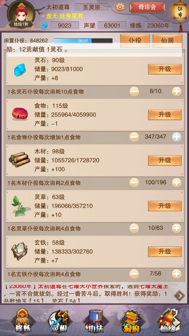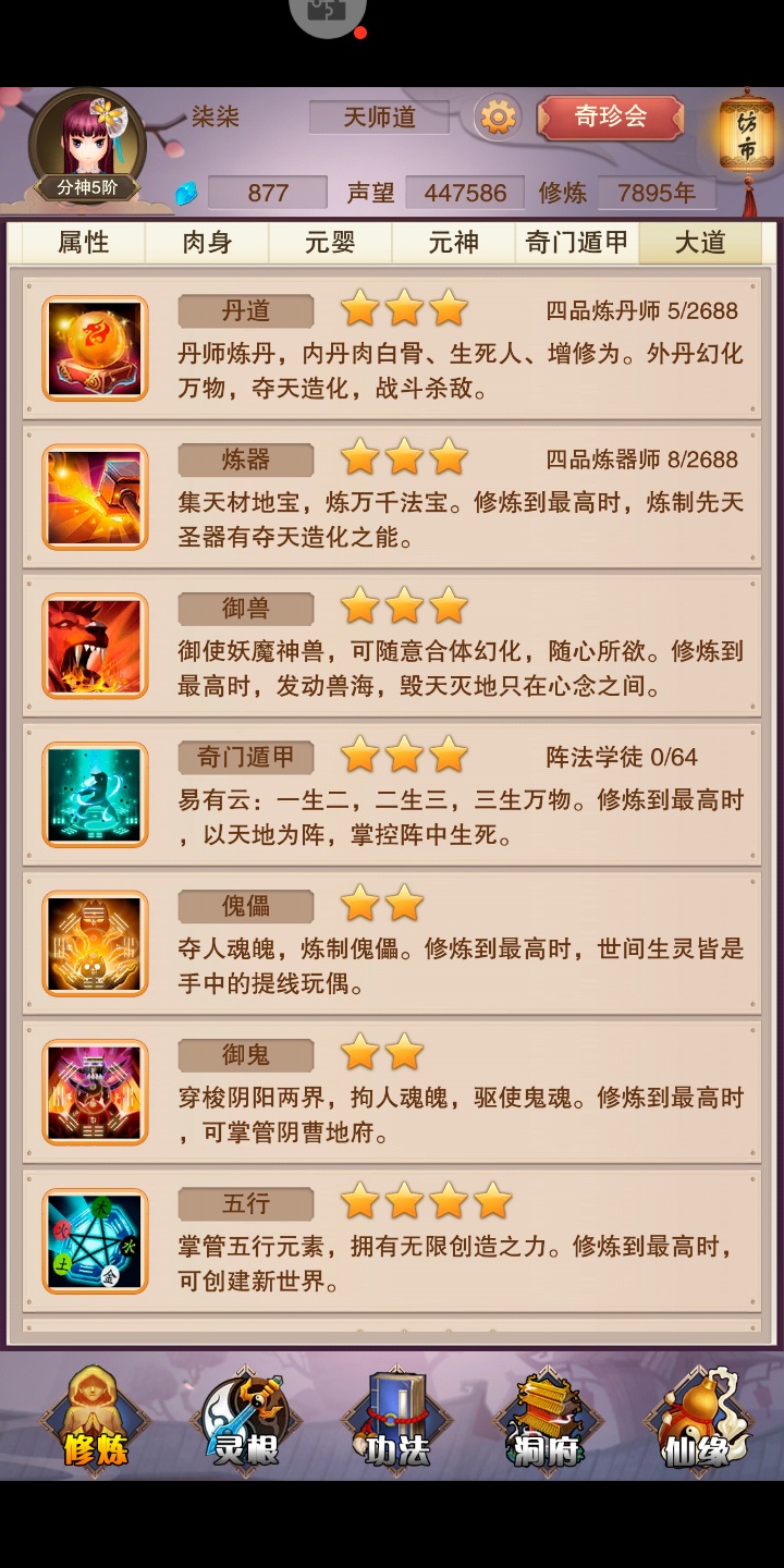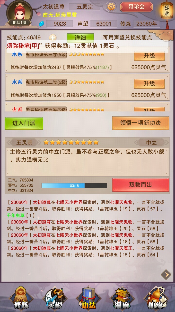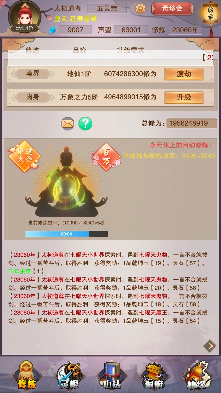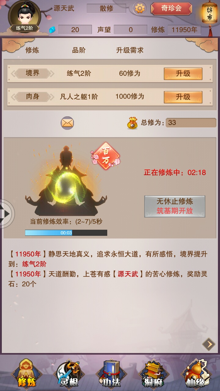 First! Look at the first picture, I'm going to show off! I gave him a regional screenshot of what the Taoist Ancestor of Nothingness said. He said that if you stop playing for a year, you can reach Sanxian! I told him with reality, NO! NO! NO! Saonian, you are too naive. Then! Look at picture 2, are you ready? I'm going to start showing off! Look how angry I am! See the 10,000-year-old one in the upper right corner? Have you seen the total cultivation level of 33? Let me tell you, this was the result of me clicking angrily, otherwise I would be at the first level of Qi Refining right now! But I regret my original decision! Qi Refining 1 sounds great, but it sounds like Qi Refining 2. It feels a bit like a dick, but Lianqi Yi is the lowest price, so it feels better!