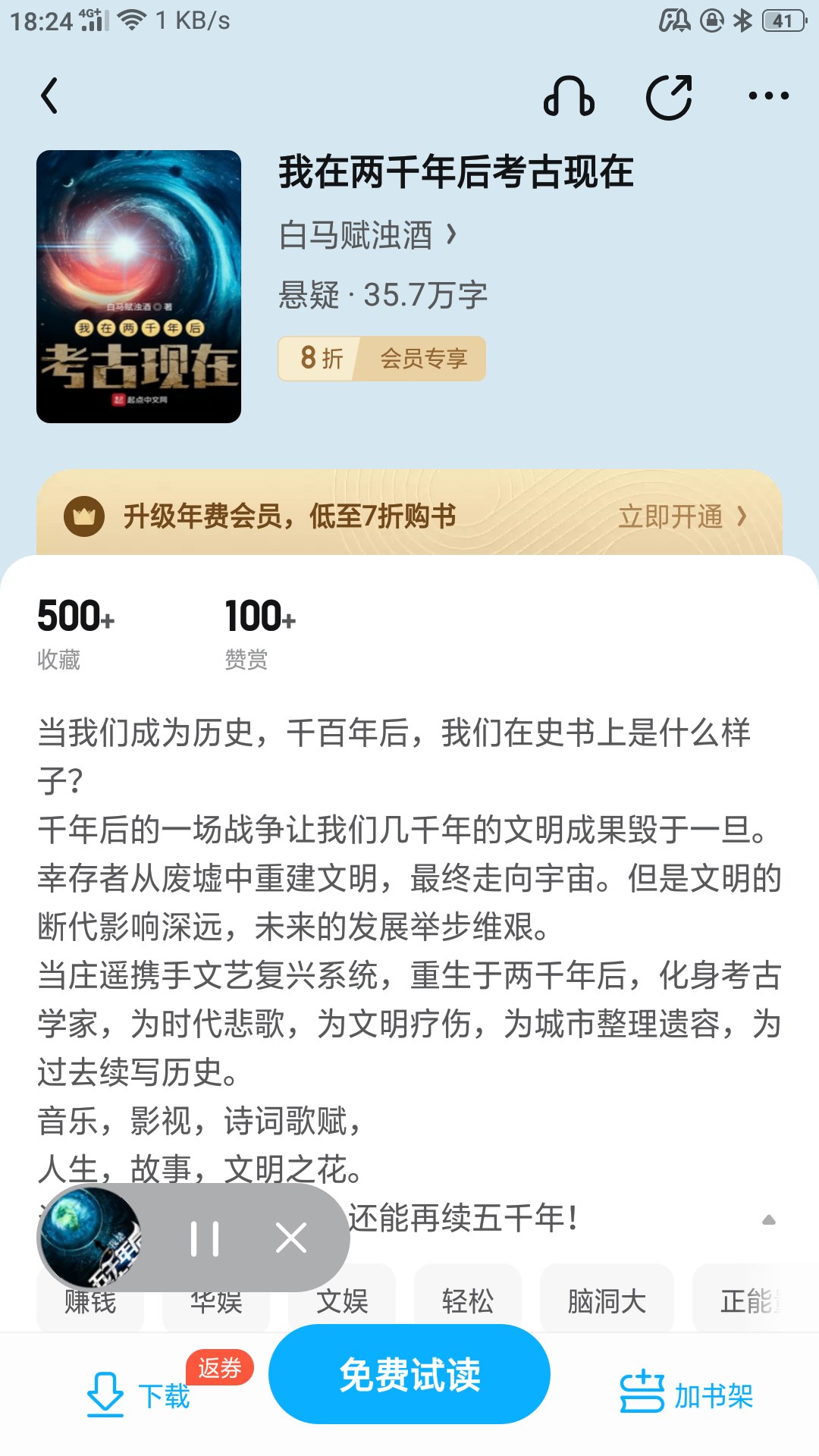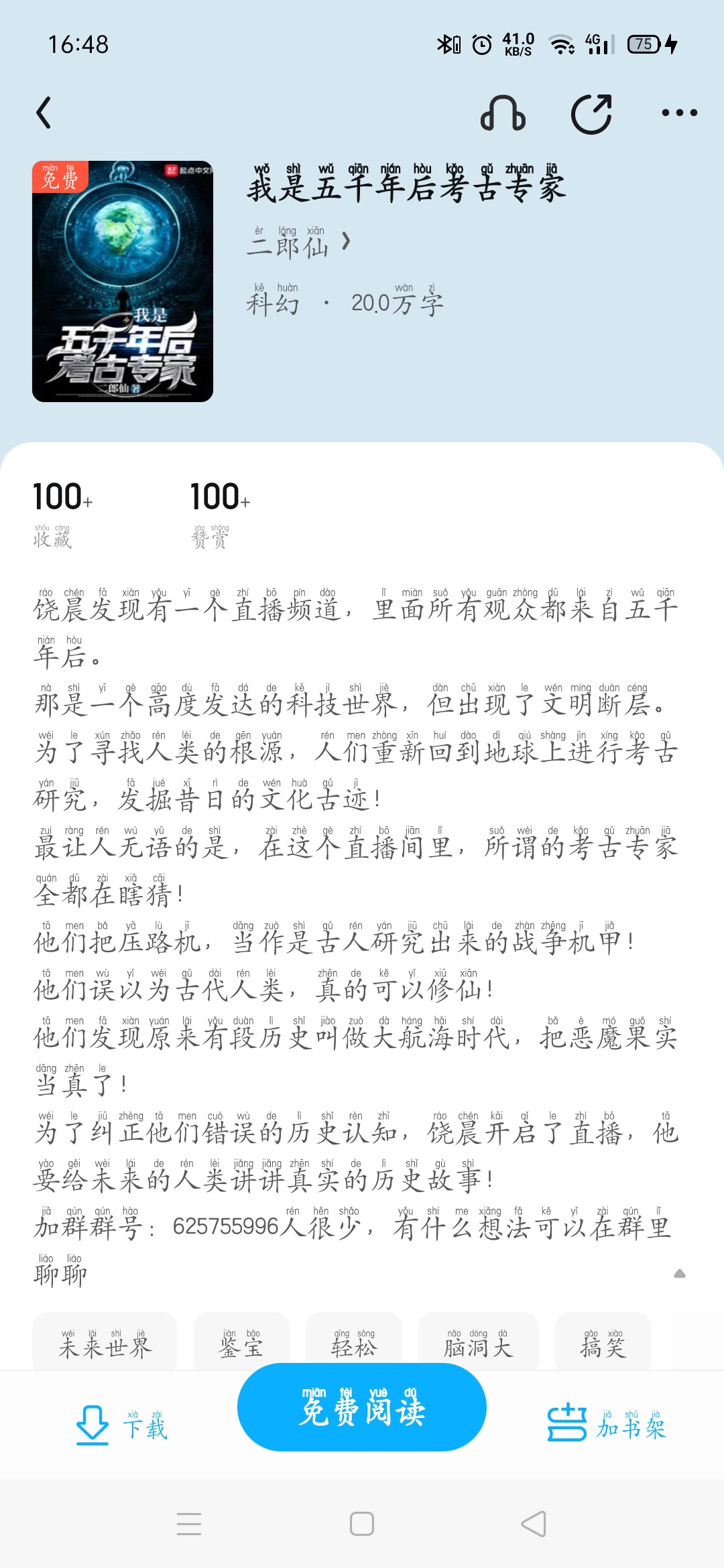 When we become history, thousands of years later, what will we look like in the history books? A war a thousand years later destroyed thousands of years of civilization. The survivors rebuild civilization from the ruins and eventually head into the universe. However, the chronological impact of civilization is far-reaching, and future development will be difficult. When Zhuang Yao joined hands with the Renaissance system and was reborn two thousand years later, he became an archaeologist, lamenting the times, healing civilization, sorting out the remains of the city, and continuing to write history for the past. Music, film and television, poetry, life, stories, the flower of civilization. The Yanhuang bloodline, the Chinese inheritance, can last for another five thousand years!