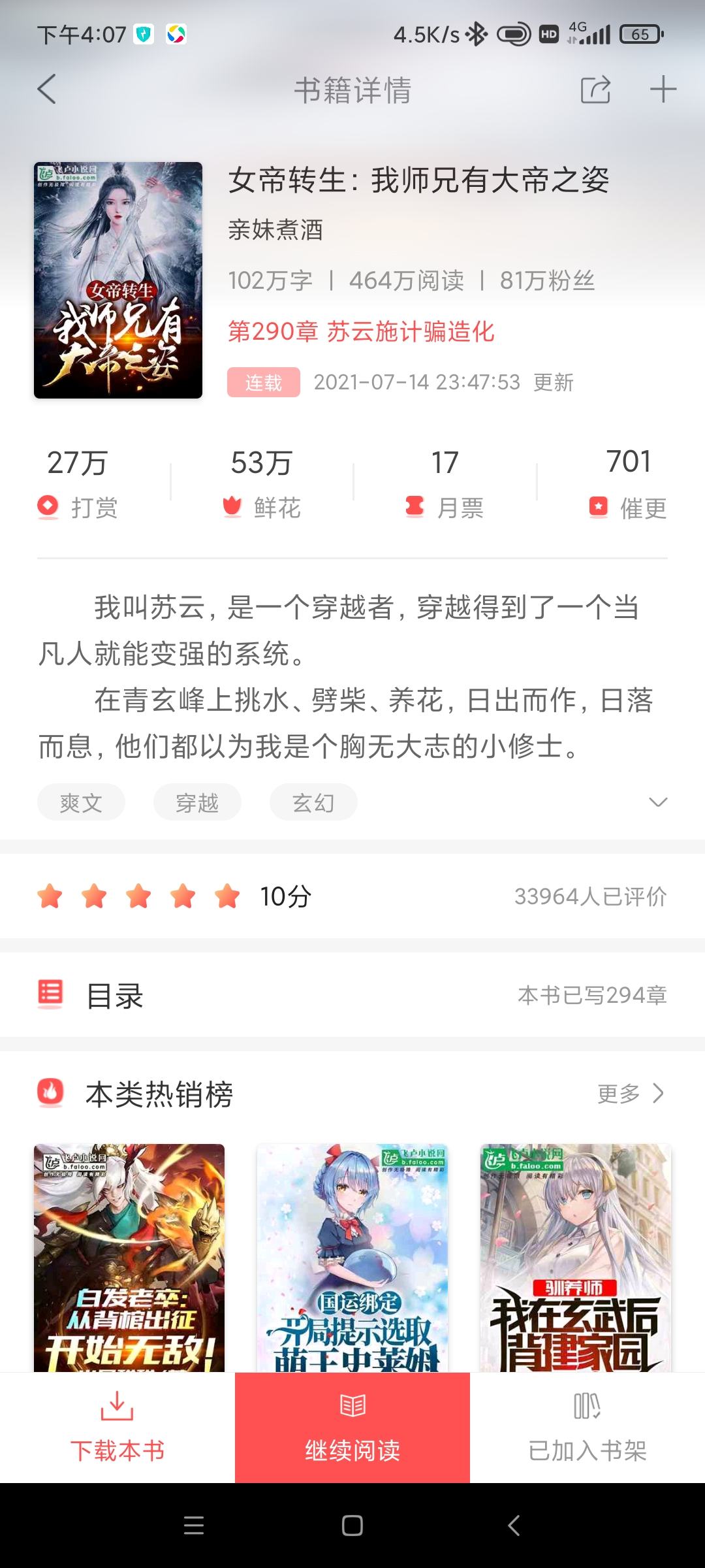 My name is Su Jingyao, and I am a reincarnated person. In the upper realm, I was attacked by a powerful enemy and died, and I was reincarnated in the lower realm. In this life, I will definitely become an emperor, even reach the legendary holy realm, and wipe out all opponents. I joined the Qingxuan Sect and became a disciple of a broken mountain peak. I had a senior brother who was handsome but behaved abnormally.