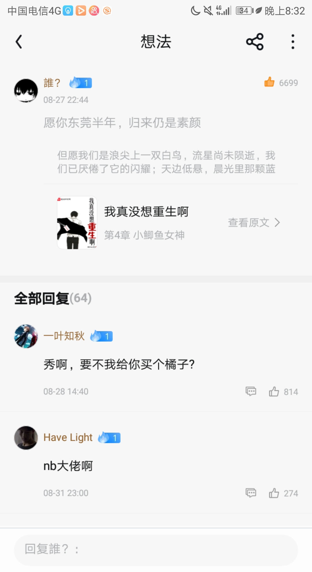 I started reading it from Xiao Xuan. It's really good. Although I have read a few books about Eunuch, I still can't help but read Star Card Master. Now a new book has been released. I'm so excited. I plan to keep it first. Also, this is my first time in the front row. I hope Miss Koi can reply. It doesn't matter if you don't reply. It's good to have an old fan like me🤥🤥