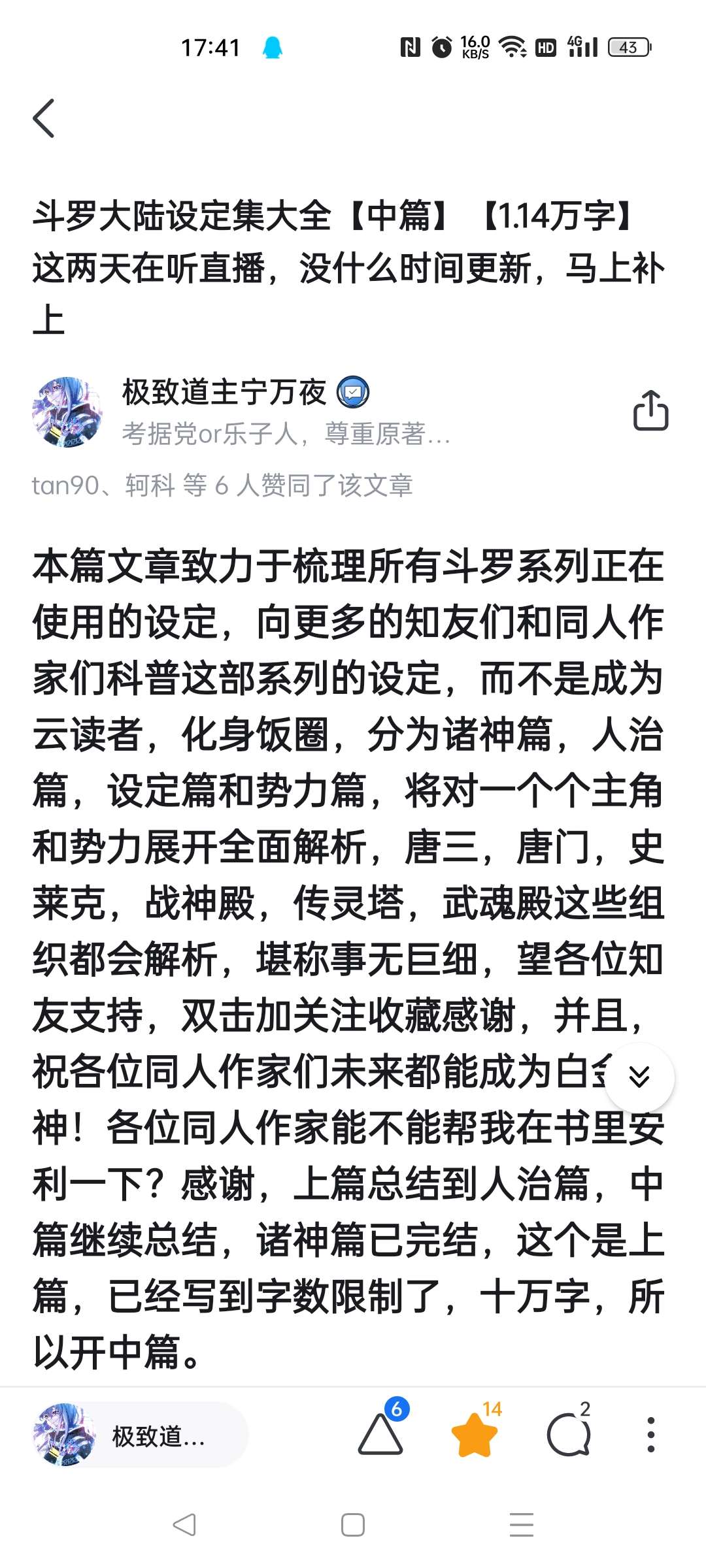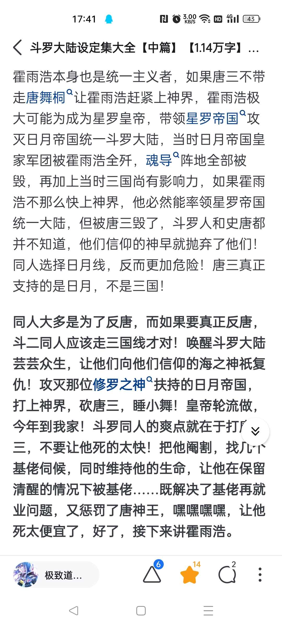 There are many conflicting settings in the Douluo series, which makes it difficult to write for fans. If you don't understand the settings well, I suggest you go to Zhihu and read the Douluo Continent setting collection summarized by experienced readers. You can avoid many useless settings. In short, come on, author, I wish you can become a platinum master. The setting collection is summarized by old fans. It brings together the settings that are still in use and the basic settings of the Douluo world view, which can help people quickly understand Douluo. Come on, author!