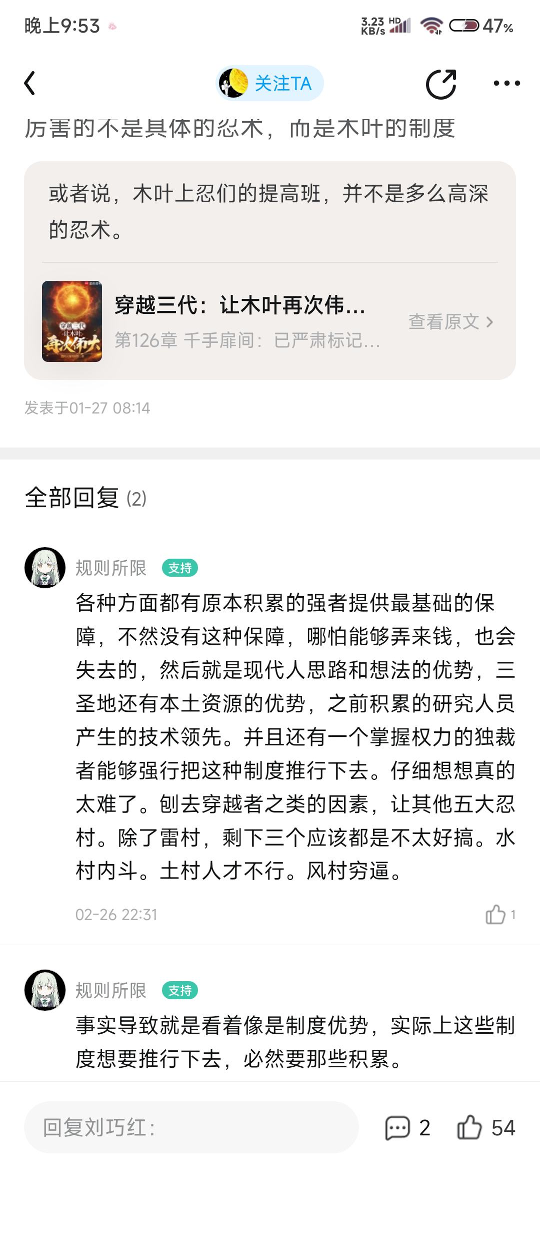 I have read them all, and the author's ideas and content are very mature. In some aspects of processing, the logic is not too confusing, and there are no pitfalls. The writing style is similar to that of popular group portraits, and it is also reasonable and well-founded in improving the original character system. Although there is a system in this article, after actually reading it, the frequency of the system's appearance is very rare, not more than five times. It is more about the description of the characters and plot. As for the farming stream and the political stream, I really feel very comfortable. The final summary is that our will of fire in Konoha is so bright and great, there is no darkness, it is all the kindness from the Hokage
