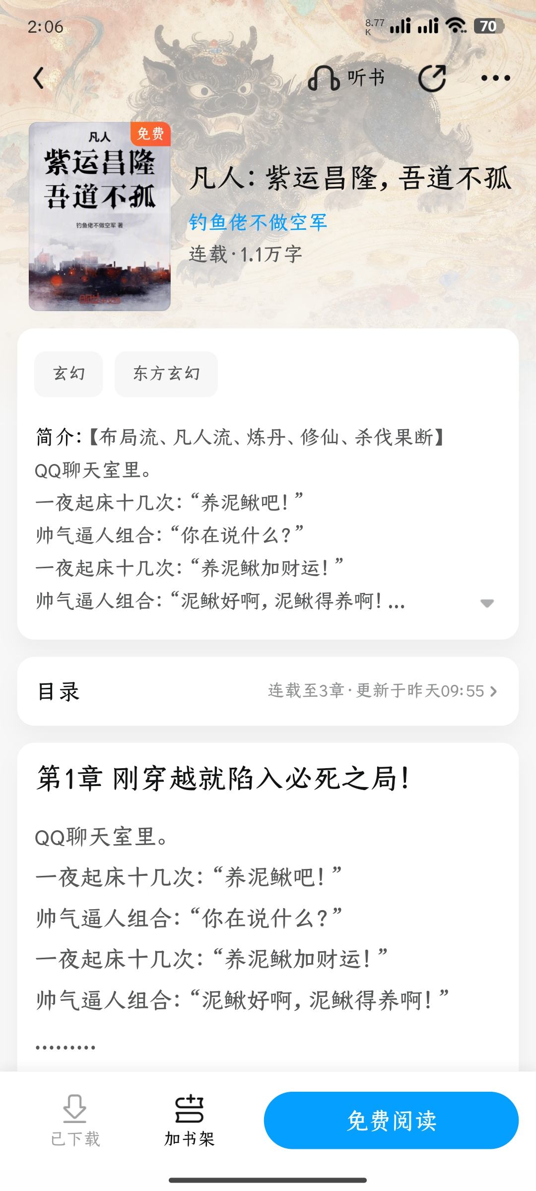 If you travel to the world of mortals cultivating immortals, can you achieve enlightenment and ascend without the little green bottle? Of course, I, Qian Long, have a ray of purple energy that can strengthen all things! Waste elixirs are transformed into wonderful medicines, and all petrified stones are transformed into precious treasures. What others think is worthless is material to me! What others see as material is good fortune to me! Is it difficult for monks to refine Tianbu Dan? Wouldn't it be better to strengthen it to the Purple Line Butian Dan? Pseudo spiritual roots turn into great spiritual roots instantly! Are the enemy monsters too ferocious? Wouldn't it be enough to just let it just immerse itself in the work? You won't cause me any trouble at all! Then Old Devil Han has a towering good luck dew? Don't panic, I have towering creation beads. "Senior Brother Qian, you didn't back down even if you promised, why did you take another step back?" "Junior Brother Han, you seem to have too much spiritual grass." "Senior Brother Qian, everyone has false spiritual roots, why are you cultivating so fast?" "Because, yours is a false spiritual root, and mine is a great spiritual root!"