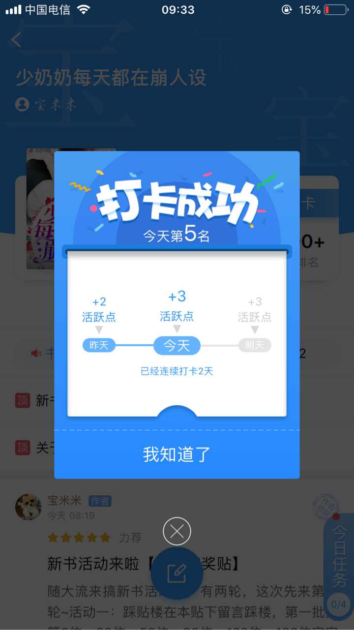 A new round of building stamping activities is coming again~~ This time, the deadline is the evening of the third day of release (the release time is not yet known) The 8th, 88th, 188th, 688th, 888th, 1188th, 1688th, 1888th, 2188th, 2688th, 2888th, 3188th, 3688th, 3888th, 4188th, and 4688th floors... Each will receive 300 reading coins in order~~ (each ID will win once) At that time, ten babies who have checked in daily for more than five days and look familiar will be rewarded with an additional 300 reading coins in the post on the floor~~ [The reward list will be announced after it is put on the shelves. The winning babies will receive the reward in the group with ID screenshots and screenshots of check-in for more than five consecutive days~]