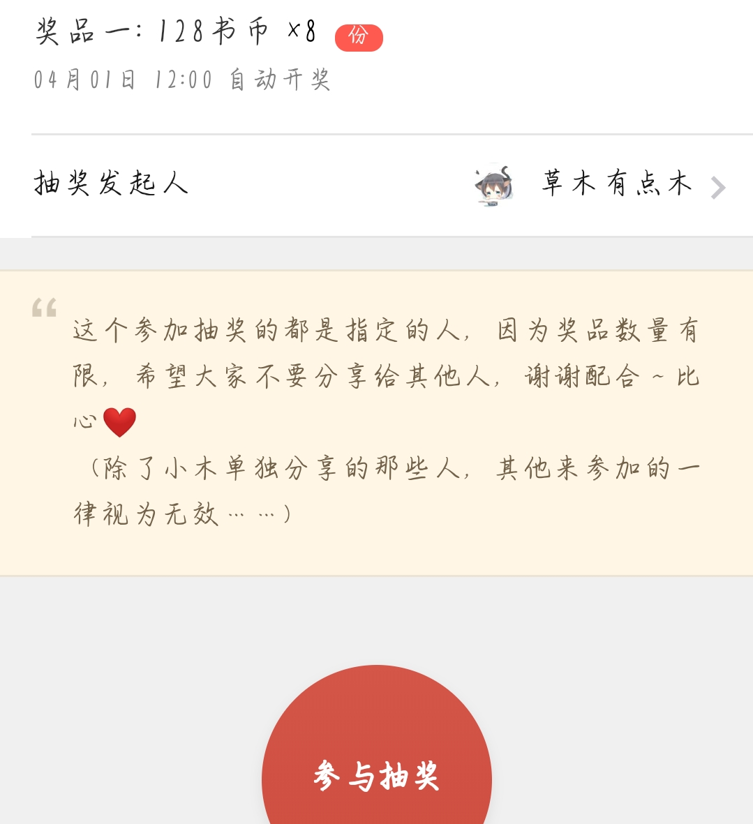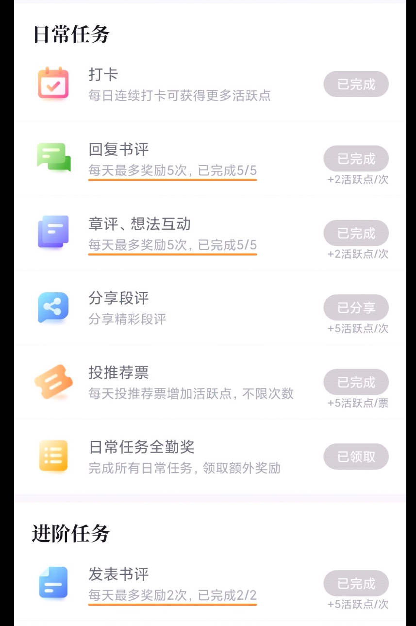 3.18~3.31 Perfect attendance check-in activity During the event, complete the daily tasks of the Book Friends Circle every day (remember to ask for five-star praise~) and the first advanced task below. You can receive 50 book coins by privately sending a screenshot to Xiaomu. Those who complete the attendance check-in for one consecutive week (seven days) can participate in the lottery (Xiaomu will share the statistics with you). Comments with good quality (long reviews, etc.) Can directly participate in the lottery! ! ! Note: Generally, those who participate in the full attendance punch-in activity must complete it for seven consecutive days without interruption, otherwise it will be calculated again... (As long as you have perfect attendance and can participate every day during the event, and you participate in the lottery, even if your perfect attendance is interrupted, you can still participate in the lottery. However, participation by people other than Xiaomu Sharing will be invalid. Xiaomu will publish the list of participants in the lottery in the group.) Remember to check in every day~ Finally, let me explain that in order to facilitate statistics and reward distribution, only one person can participate in the perfect attendance check-in activity. However, the lottery can have small accounts (for example: the first account has completed full attendance for seven consecutive days and can participate in the lottery. The second account can also participate in the lottery because it has high-quality comments!)