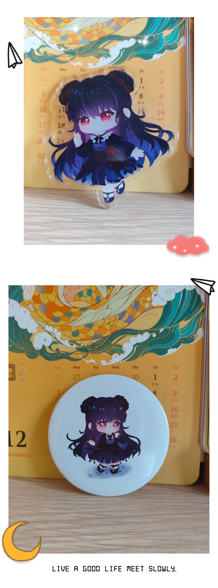 Some physical pictures of surrounding events from previous events [For viewing only, there is no way to obtain it yet. ◉◉◉ The surroundings are as follows: Figure 1: Stand up sign Picture 2: Refrigerator magnet and small standing sign Figure 3: Mouse pad Figure 4: Color paper Figure 5: Acrylic bricks Figure 6: Canvas bag Figure 7: Notebook Figure 8: Baji
