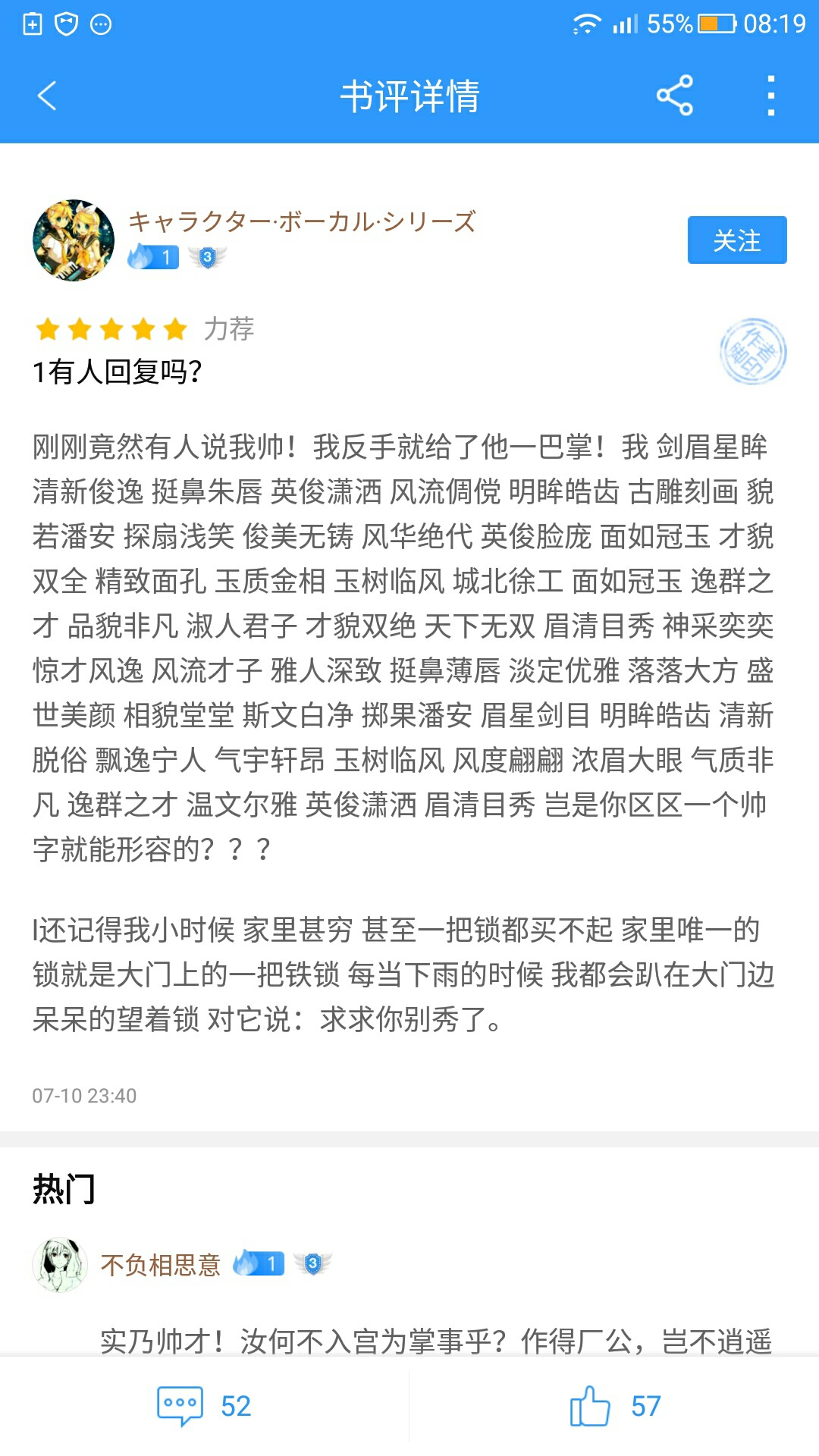 Xiao Yan said: "My name is Xiao Yan, and I am a person who levels up every day." Lin Dong said: "My name is Lin Dong, and I am a person who levels up every day." Muchen said: "My name is Muchen, and I am a person who levels up every day." Xiao Yan said: "I practice every day, and my goal is to become a Dou Emperor." Lin Dong said: "I practice every day, and my goal is to advance to the ancestral realm." Muchen said: "I practice every day, and my goal is... Well, Tudou didn't sue me." Xiao Yan said: "There is a Yao Lao in my ring who knows everything and is better than the guide." Lin Dong said: "There is a Diao Lord in my stone talisman, who knows everything, and is better than the guide." Muchen said: "There is a Nine Nether Bird in my black paper. It knows everything and is better than the guide." Xiao Yan said: "In my world, there is something called strange fire, which is as powerful as artifact-level out-of-print equipment." Lin Dong said: "In my world, there is something called an ancestral talisman, which is as powerful as artifact-level out-of-print equipment." Muchen said: "In my world, there is something called the Supreme Body Technique, which is as powerful as artifact-level out-of-print equipment." Xiao Yan said: "I come from the Xiao family in Wutan City, and I am a young master." Lin Dong said: "I come from the Lin family in Qingyang Town, and I am a young master." Muchen said: "I come from the Mu Territory of the Northern Spirit Realm, and I am a young master." Xiao Yan said: "I like a girl, her name is Gu Xun'er, but her Gu clan is very powerful and won't let me be with her." Lin Dong said: "I like a girl, her name is Ling Qingzhu, but her family, Jiutian Taiqing Palace, is powerful and won't let me be with her." Muchen said: "I like a girl, her name is Luo Li, but her Luo Shen clan is powerful and won't let me be with her." Xiao Yan said: "When I was young, I didn't have any lofty ambitions. My only goal was to defeat Nalan Yanran." Lin Dong said: "When I was young, I didn't have any lofty ambitions. My only goal was to kill Lin Langtian." Muchen said: "When I was a child, I didn't have any lofty ambitions. My only goal was to defeat Ji Xuan." Xiao Yan said: "To be honest, the reason why I have achieved what I have today is entirely due to chance. I have taken countless high-level pills and encountered ancient inheritance. Lin Dong said: "To be honest, the reason why I have achieved what I have today is entirely due to chance. I have eaten countless treasures from heaven and earth and encountered countless ancient inheritances." Muchen said: "To be honest, what I have achieved today is entirely due to chance. I have eaten countless medicinal herbs and met countless ancient inheritances. Xiao Yan said: "I have a hobby, which is to pretend to be a pig and eat the tiger. I remember that when I was fighting against the emperor, a lot of fighting sects fell on my hands. " Lin Dong said: "I have a hobby, that is, I like to pretend to be a pig and eat the tiger. I think back when I was in the Mysterious Realm of Life, a lot of people from the Mysterious Death Realm fell on my hands. " Muchen said: "I have a hobby, which is to pretend to be a pig and eat a tiger. I remember when I was in the Heaven Transformation Realm, a lot of Tongtian Realm fell on my hands. " Xiao Yan said: "I have special skills, I can make elixirs. " Lin Dong said: "I have a specialty, I can draw talismans. " Muchen said: "I have special skills, I can set up formations. " Xiao Yan said: "I have two wives. " Lin Dong said: "I also have two wives. " Muchen said: "I only have one wife now, but I believe I will have a second one. " Xiao Yan said: "My weapon is a ruler, his name is Xuan Zhong Ruler. " Lin Dong said: "I have many weapons, and they are collectively called the Nine Divine Weapons. " Muchen said: "My weapons haven't appeared yet, and the ones I use now are captured ones. Please give me weapons." " Xiao Yan said: "I finally became the Fighting Emperor, defeated the Huntian Emperor, and regained the peace of the mainland. " Lin Dong said: "I finally advanced to the ancestral realm, defeated the strange demon emperor, and saved thousands of creatures in the world. " Muchen said: "I don't have as great a deeds as they do, but I'm still young and I believe I will be more awesome than them in the future. " Xiao Yan said: "Later, I joined Canaan College, participated in the student competition, and became famous in one battle. " Lin Dong said: "Later, I joined the Dao Sect, participated in the palace examination, and became famous in one battle. " Muchen said: "Later, I joined Beicang Spiritual Academy, participated in the hunting competition, and became famous in one battle. " Xiao Yan said: "I have a special NB ultimate move called Buddha's Furious Fire Lotus. " Lin Dong said: "I have a very special ultimate move called Qinglong Transformation Technique. " Muchen said: "I have a very special ultimate move called the Ninth Level Pagoda. " Xiao Yan said: "If there are any similarities. " Lin Dong said: "It's purely a coincidence. " Muchen said: "I have no idea. "