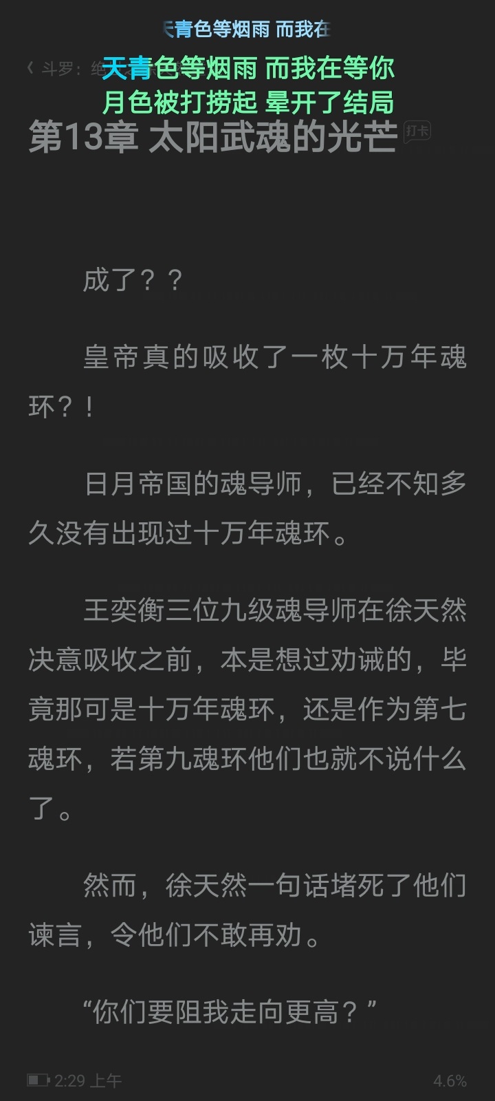 I think the emperor written in this book is very good. He has changed from being ruthless and suspicious in the past to employing people without suspicion and using others without suspicion. The method of winning over geniuses is also very gentle. The characters I liked very much in the previous Douluo novels also have better endings. Those outstanding people who were ignored in the original work have a lot of regrets and have been made up for by the author. I don't know how to say more. I hope the author can write more content. If you keep updating, I will always support you! ! ! Monthly tickets and gifts, I hope the author will continue to maintain high-quality content