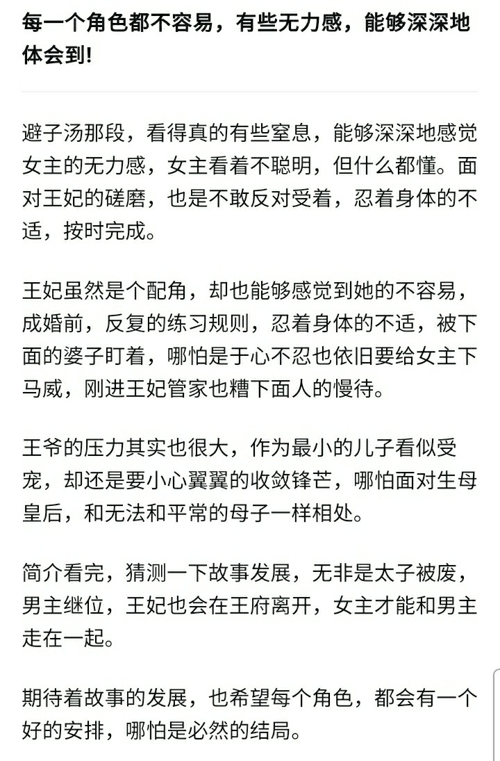 The author has a reason to write such a plot, but it should not be after the heroine has a miscarriage. It's already very uncomfortable, why can't I have a good rest? What Jade did was even more disgusting. He was thinking about the little eunuch, but he got together with King Jin's guards and framed King Jin. As I type these words, I am already very sensible. I don't know how the next plot will develop, but the male and female protagonists are too difficult, so don't torture them any longer. When will the concubine, this troublemaker, be able to go offline? I really can't stand it anymore.