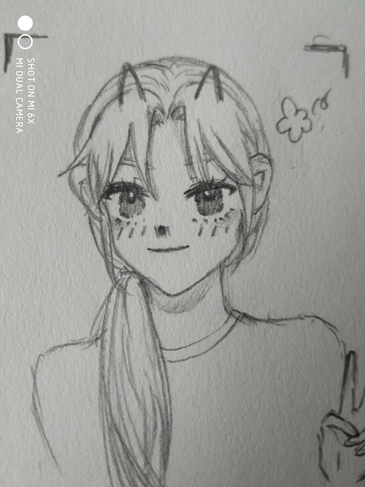 Skills are frustrated but hands are weak. ・゚゚・(/ω\)・゚゚・. If there are any problems, just start with ease. The heroine is called a cold goddess, and she must have a somewhat aggressive appearance. The eyes are upper three whites, which is why I painted them so white that they are not obvious. Expression: Not happy! Because painters usually tie their hair up, it is more convenient and does not affect the painting. Then I personally prefer the middle part! I don't know how to draw clothes, so I drew ordinary T-shirts. But after all, this is a Mary Sue aristocratic academy. The school uniform should be that kind of uniform, with a tie or bow tie, and a pleated skirt underneath. Daily clothes should not be simple either! In my heart, the male protagonist is just a puppy Gou(u‿ฺu✿).
