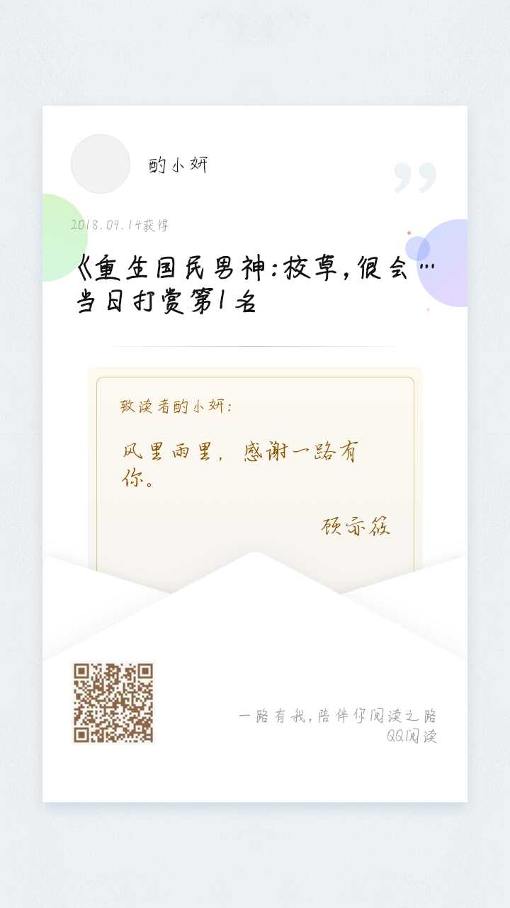 ――I probably discovered this book accidentally. Do you believe that I was attracted by the introduction? It is undeniable that I really like this type of writing. I think I have a good impression of my brother's writing. I'm looking forward to the development of this book, and I'm grateful to have encountered it so early. ――I really hope to be able to grow up with it, so I hope Xiaoxiao won't give up, okay? Even if the update is a little slow, I can still afford to wait, although I don't want to read unfinished articles. But I am willing to spend my own time growing up with it. Well, I am really scared of other authors. When you encounter a good article, you are not afraid of being updated slowly, but you are afraid that it will not be updated. This is what every reader thinks. ――Okay, I admit that I am a little excited to have found a text that suits my heart. I have a feeling it will become one of my favorites. I look forward to the growth of this book. --The last point, and the most important point, is to confess my love to Xiaoxiao. I hope Xiaoxiao can be familiar with me. After all, there are not too many people now, so familiarity will not be forgotten so easily. I really like you, like the wind that has traveled eighty thousand miles, regardless of the date of return, I love you, refill. --Xiao Xiao, you must remember me. I am Wan Bai. You can call me Bai Bai. Mua
